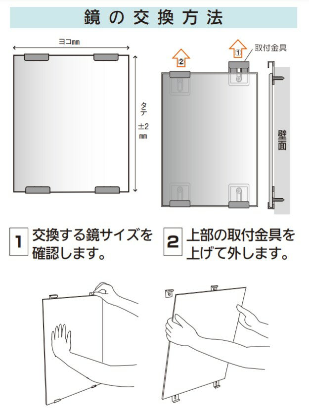 (耐湿加工鏡) 現在ついている鏡止金具はそのまま使えます。