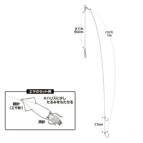 夜焚きのイカ釣りの際、小型のイカが釣れたらこの仕掛けの登場です。