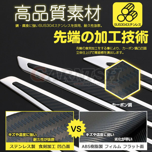 商品詳細 適合車種:ノア/ヴォクシー 80系 ZS/Siグレード 適合年式:前/後期 ピース数:4pcs 材質:SUS304ステンレス カラー:鏡面+カーボン調(食刻加工) 品番:4003 → 同車種他のパーツはこちら ← 取付方法 1、取り付け前に仮合わせし、フィッティング確認をしてください。