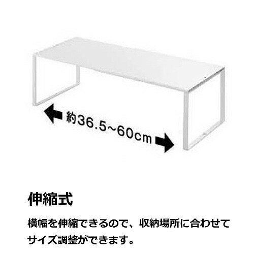 ■伸縮できるから収納場所のサイズに合わせて横幅を調整できる丈夫なスチール製伸縮棚です。
