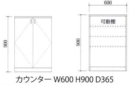 ●仕上り寸法(ミリ):間口600×高さ900×奥行365 ●材質:扉表面部→オレフィンシート張り、カウンター天板→強化紙張り、その他の表面材→強化紙張り、棚板→樹脂、芯材はすべてパーチクルボード ●ノックダウン式(組み立て式) ★